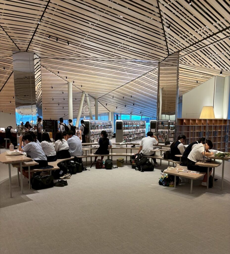 お一人の図書館職員の方に、「今どういう存在でありたい? これからどこを目指していきたいのか?」という質問をさせていただいた際に「若い世代に気軽に来てもらえる図書館」という内容の回答であった。その通りのように、本を貸出できる場所としてではなく、休憩所として交流の場として学びの場として、利用者によって様々な環境へと変化することのできる図書館であった。視覚的に開放的な空間であるということも理由の一つとして考えられるが、図書館からは人が過ごしやすく、生活に欠かせないような場所として作ろうとする意識を感じることができた。利用者のニーズに応えながら、地域と共存していく図書館が今度の公共図書館の在り方の一部として求められていくだろう。