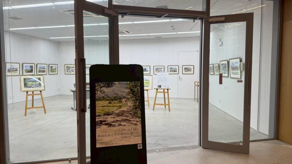 展示に関連してイベントについては、朗読、演奏(電子ピアノのコンサート)、映画(ノーマル・活動映画弁士)、ワークショップ、市内美術部の作品展示や埼玉読書コンシェルジュのおすすめ本展示を行っているそうである。以上のことからも分かる通り、7類の芸術に力を入れている図書館とのことで、7類のみ1階に配架されている。訪問時、ミルクに関する展示があったが、那須塩原市では酪農が盛んであることが展示理由の一つで、地域に関連した取り組みがなされている。カフェでもミルクの製品が多くあった。