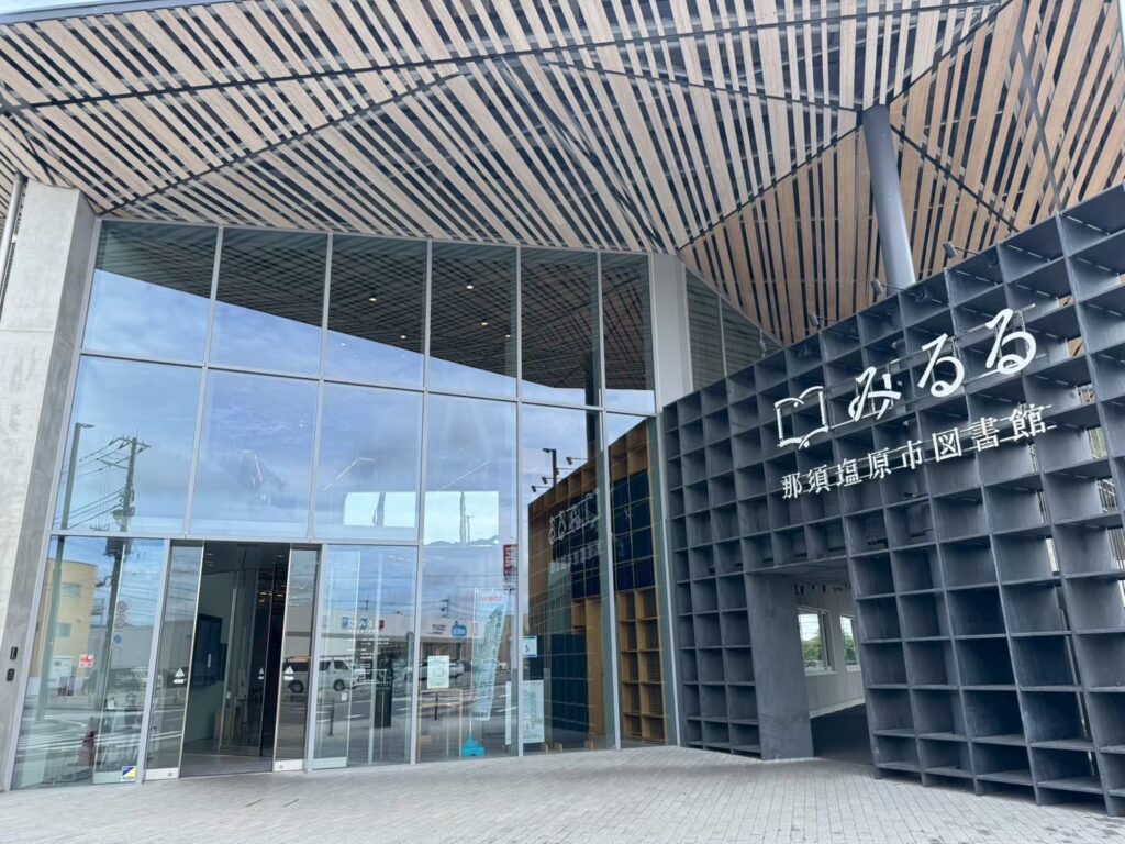 那須塩原市立図書館みるるは、JR黒磯駅の目の前に構えており、外観や内装は木材を基調とした温かみのある建物であり、2階に分かれている。1階は、目を見張る天井までの本棚がそびえたっており、本棚には配架されている本に関連した言葉を巨大な文字にして展示を行っている。BGMが流れ、カフェも併設され、訪問した時間が夕方であったこともあってか、多くの高校生がおしゃべりをしていた。本棚は、基本的に詰めずにかなりゆとりをとっており、全体的にゆったりとした空気や雰囲気が流れている空間であった。